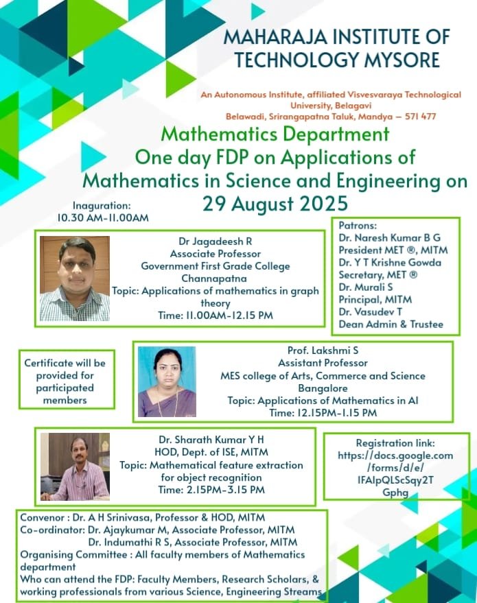 The department is active in research in most areas of pure and applied mathematics, including numerical analysis, computational fluid dynamics, graph theory, discrete mathematics, complex analysis, probability theory, game theory and operation research. Our faculty regularly publishes in reputed journals and contributes to national and international conferences, playing a key role in expanding the frontiers of mathematical knowledge.